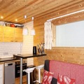 Inside, you’ll find a comfortable bedroom with a 120cm double bed, a sleeping area with two 80cm bunk beds, and a living room featuring a sofa bed and TV. The kitchen is fully equipped with an oven, microwave, electric hob, extractor hood, and refrigerator, making it easy to prepare meals after a day on the slopes. The bathroom includes a bathtub, and there’s a separate toilet for added convenience. The south-facing terrace invites you to soak in the sun and admire the stunning alpine scenery, while the dedicated ski locker ensures your gear is always ready for your next adventure.