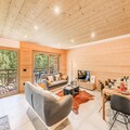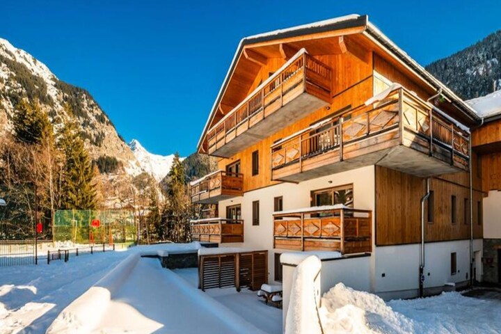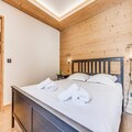 In the picturesque hamlet of Villard Dessous, where the majestic Vanoise mountains stretch endlessly across the horizon, lies a modern alpine retreat that promises both elegance and comfort. With unobstructed views of the peaks and the charming village of Champagny en Vanoise below, this residence offers a perfect blend of tranquility and convenience. Whether you’re seeking a winter wonderland or a summer escape, this location invites you to immerse yourself in the beauty of the French Alps. \n\nThe apartment, part of the newly built Terrasses de la Vanoise, boasts a spacious 102m² layout designed to accommodate up to eight guests. Featuring three north-facing bedrooms, including a family suite with bunk beds, and a luxurious bathroom with whirlpool jets, every detail has been thoughtfully crafted for relaxation. The fully equipped kitchen opens onto a cozy living room, where you can unwind after a day of adventure. Step out onto the south-facing balcony and breathe in the crisp alpine air as you marvel at the panoramic views. Additional amenities include Wi-Fi, hotel services, parking with electric charging stations, and a ski locker with a boot dryer, ensuring a seamless stay. \n\nLocated just 500 meters from shops and ski lifts, you’ll have easy access to the village’s amenities, including free municipal shuttles that connect you to Champagny-le-Haut. In summer, the nearby swimming pool and spa provide refreshing leisure options. Explore the surrounding trails, indulge in local cuisine, or simply relax in the serene alpine ambiance. With its blend of modern luxury and natural beauty, this property is your gateway to unforgettable mountain memories.