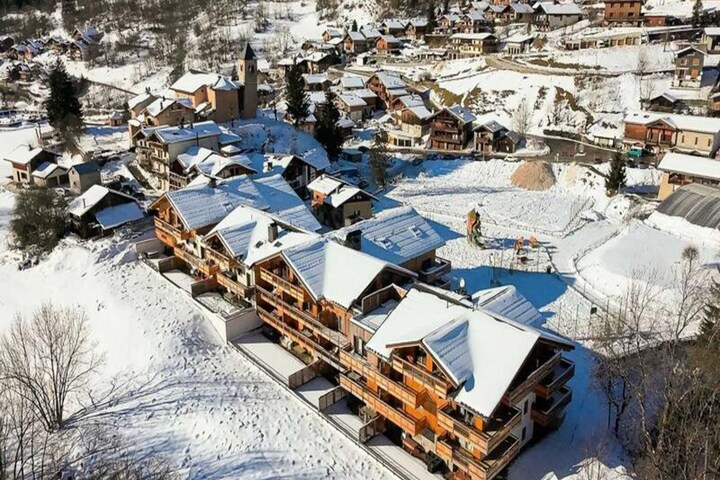 High above the picturesque valley, where the majestic peaks of the Vanoise mountains stretch into the horizon, lies the elegant Terrasses de la Vanoise residence. This modern alpine retreat, nestled in the hamlet of Villard Dessous, offers an unparalleled blend of luxury and convenience. With breathtaking views of Champagny en Vanoise and its surrounding landscapes, it’s the perfect setting for a memorable mountain getaway. Whether you’re here for winter skiing or summer hiking, the charm of this location will captivate you from the moment you arrive. \n\nThe apartment Vulcania, located on the second floor, is a spacious haven designed for up to eight guests. Its thoughtful layout includes three north-facing bedrooms with plush double beds, a cozy cabin with bunk beds, and two modern bathrooms equipped with heated towel rails. The fully equipped L-shaped kitchen opens onto a stylish living room, complete with satellite TV and access to a south-facing balcony. Here, you can savor the crisp alpine air while admiring the stunning vistas of the Vanoise peaks. Hotel services such as Wi-Fi, bed linen, towels, and end-of-stay cleaning ensure a seamless and comfortable stay. \n\nJust 500 meters from shops and ski lifts, the residence offers easy access to Champagny’s amenities. Free municipal shuttles, running every 30 minutes during high season, connect you to the charming village and the serene Champagny-le-Haut area. In summer, the nearby swimming pool and spa provide relaxation after a day of exploring the trails of the Vanoise National Park. \n\nWhether you’re seeking thrilling ski adventures or tranquil moments surrounded by nature, Terrasses de la Vanoise is your gateway to the best of the French Alps. Let the beauty of the mountains and the comfort of this residence create unforgettable memories for you and your loved ones.