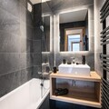 The residence features spacious apartments designed with traditional Savoyard architecture, combining warm wood and natural stone for an authentic alpine feel. Each apartment is fully equipped, offering a cozy living room with a double sofa bed, an open-plan kitchen, and comfortable bedrooms. With options ranging from studios to 10-person mountain chalets, there’s a perfect fit for every group, whether you’re traveling with family or friends. Modern amenities such as Wi-Fi, a children’s playroom, and covered parking ensure a hassle-free stay.