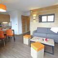 Stay in the heart of Les Menuires at Résidence Le Coeur des Loges, a modern alpine retreat built in classic Savoyard style. This spacious apartment combines natural stone, warm wood finishes, and thoughtful design to offer a cozy stay for up to six guests. With a welcoming living area featuring a comfy sofa bed and TV, a well-equipped kitchenette, a double bedroom, and a cozy alcove with bunk beds—this is the perfect base for both families and furry companions. After a day out, enjoy a soak in the heated indoor pool or unwind on your private balcony.