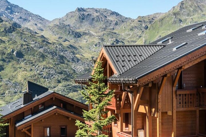 This charming holiday apartment in Les Menuires offers a warm and cozy atmosphere with a living area that includes a sofa bed and armchair, a mezzanine with two single beds, and two bedrooms: one with a double bed and the other with two single beds. The apartment also features two bathrooms, one with a shower and the other with a bathtub-shower, and a separate toilet. Pets are allowed for an additional fee, and baby kits are available upon request. A deposit of 600 is required.