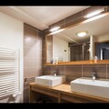 Living room(double sofa bed, TV, fireplace, seating area), open kitchen(hob(ceramic), electric kettle, coffee machine, oven, microwave, dishwasher, fridge, dishes and cutlery), bedroom(single bed, single bed), bedroom(single bed, single bed), bedroom(single bed, single bed), bedroom(bunk bed or 2 single beds), bathroom(bathtub or shower, toilet, shampoo), bathroom(bathtub or shower, toilet, shampoo), ski storage, sauna, balcony or terrace, swimming pool(shared with other guests, indoor), hairdryer