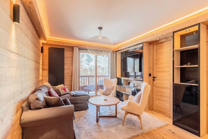 High above the charming village of Saint Martin de Belleville, this luxurious alpine retreat offers an unparalleled blend of comfort and elegance. With its southwest-facing balcony overlooking the slopes and the picturesque village, this fully renovated apartment invites you to immerse yourself in the beauty of the French Alps. Whether you're here for the thrill of skiing or the tranquility of mountain life, this residence promises a memorable escape.