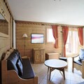 Spanning an impressive 107 m², the apartment comfortably accommodates up to eight guests with its three chalet-style bedrooms, each featuring an en-suite bathroom for ultimate privacy. The open-plan living area, complete with a fully equipped kitchen and cozy lounge, is perfect for gathering after a day of adventure. Modern amenities such as Wi-Fi, a flat-screen TV, and a DVD player ensure your stay is as convenient as it is comfortable. The property also includes a ski locker with boot dryers, a private garage space, and thoughtful touches like beds made on arrival and end-of-stay cleaning.