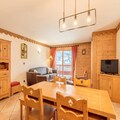 Spanning 70 square meters, the apartment comfortably accommodates up to six guests, making it ideal for families or small groups. The living room, with its large TV and full-length balcony, invites you to unwind while soaking in the stunning views. The open-plan kitchen is fully equipped with modern appliances, including a Nespresso machine, ensuring you have everything needed to prepare delightful meals. Two beautifully appointed bedrooms, one with an en-suite shower room, offer direct balcony access and stunning vistas. Additional features include a pull-out sofa bed, ski lockers with boot dryers, and a private garage space.