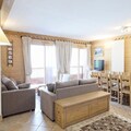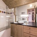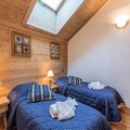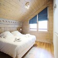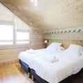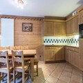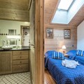 Spanning 103 m², the apartment comfortably accommodates up to 10 guests with its spacious and thoughtfully designed layout. The warm, chalet-style interiors feature four cozy bedrooms, including a master suite with an en-suite shower room and balcony, twin rooms with skylights or windows, and additional sleeping space in the living area. The open-plan kitchen is fully equipped with modern appliances, making it easy to prepare meals after a day of adventure. Relax in the inviting living room, complete with a TV and stunning mountain views, or unwind in the wellness area, which includes a heated indoor pool, sauna, hammam, jacuzzi, and fitness room.