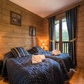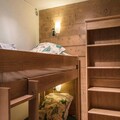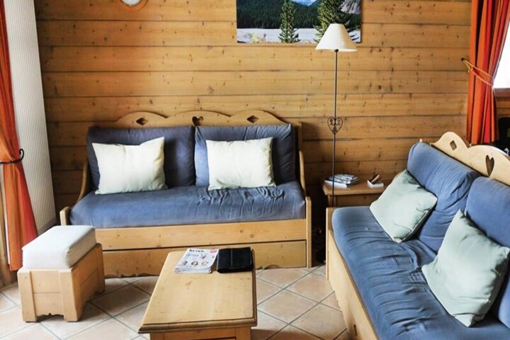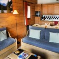 Designed to accommodate up to six guests, the apartment features a bright living room with a southwest-facing balcony, a fully equipped open-plan kitchen, and three chalet-style bedrooms, including a cozy cabin room with bunk beds. Modern amenities such as Wi-Fi, a TV, a DVD player, and a ski locker with boot dryers ensure your comfort after a day on the slopes. The wellness area, with its heated indoor pool, sauna, hammam, jacuzzi, and fitness room, offers the ultimate relaxation, while additional services like a bakery delivery and raclette set rental add a touch of alpine charm to your stay.