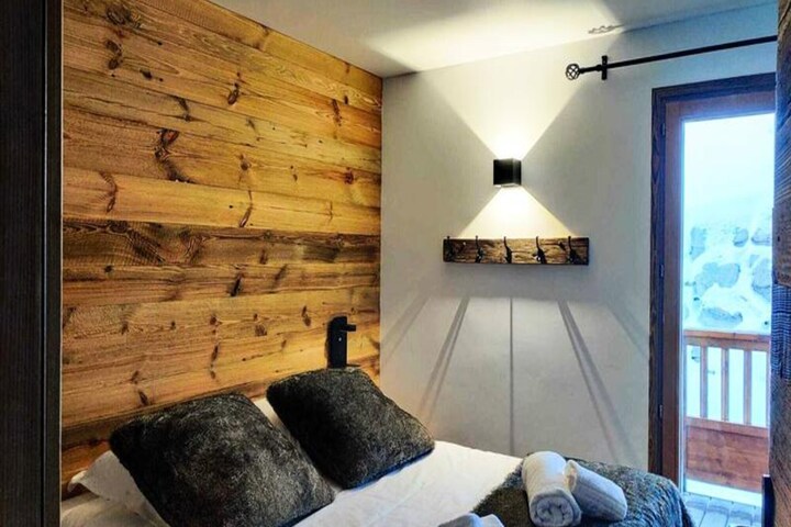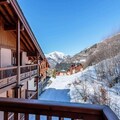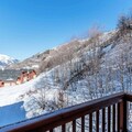 Step into a spacious 70 m² apartment designed for up to six guests, where every detail has been thoughtfully curated for your comfort. The cozy living room opens onto an east-facing balcony with stunning mountain views, while the fully equipped kitchen invites you to prepare hearty meals after a day on the slopes. The two chalet-style bedrooms, including one with an en-suite shower room, ensure restful nights. Additional amenities such as a pull-out sofa, ski lockers with boot dryers, and complimentary Wi-Fi enhance your experience. The residence also offers a wellness area featuring a heated indoor pool, sauna, hammam, jacuzzi, and fitness room, providing the ultimate relaxation.