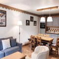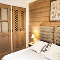 Spanning 73 m², this spacious 3-room apartment comfortably accommodates up to six guests. The elegant interiors feature a cozy living room with a TV and DVD player, a fully equipped open-plan kitchen, and two beautifully appointed bedrooms, including a master suite with an en-suite shower room. The additional bathroom with a bathtub and heated towel rail ensures a relaxing end to your day. For added convenience, the apartment includes ski lockers with a shoe dryer, two private garage spaces, and thoughtful touches like beds made upon arrival, towels, and end-of-stay cleaning.