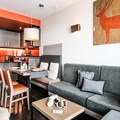 The residence boasts spacious apartments adorned with elegant wood and stone finishes, blending modern comfort with alpine charm. Your retreat includes a cozy living room, a fully equipped kitchen, and two inviting bedrooms—one with a plush double bed and the other with two singles. The bathroom, complete with a whirlpool bath, promises moments of pure relaxation after a day on the slopes. With complimentary WiFi, television, and thoughtful touches like a baby kit and raclette grill available on request, every detail has been considered to make your stay seamless and enjoyable.