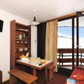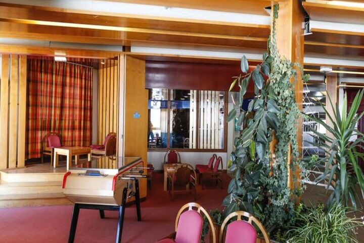 The residence spans six floors, serviced by three elevators, and offers a variety of accommodations, from cozy studios for two to spacious two-room cabins for six. Each unit is thoughtfully designed for comfort and convenience, featuring a well-equipped kitchenette, a private balcony, and modern amenities like WiFi and television. Families and groups will appreciate the practical layout, including a living room with sofa beds and a separate cabin with bunk beds. For added indulgence, start your mornings with the bakery service, delivering fresh pastries to fuel your day on the slopes.