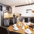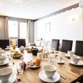 The residence features 12 beautifully furnished apartments, accommodating groups of 4 to 14 guests. Each apartment is a haven of warmth and style, with spacious living areas, a cozy fireplace, and a fully equipped kitchen for shared meals. The six bedrooms with twin beds and additional double bedroom ensure restful nights for everyone, while the five shower rooms, two bathrooms, and three toilets provide ample convenience. After a day on the slopes, unwind in the on-site sauna or fitness room, or take advantage of the heated swimming pool and sauna just 200 meters away at Résidence L’Hermine****. Thoughtful touches like fresh bread and pastries delivered to your door each morning elevate your stay to pure indulgence.