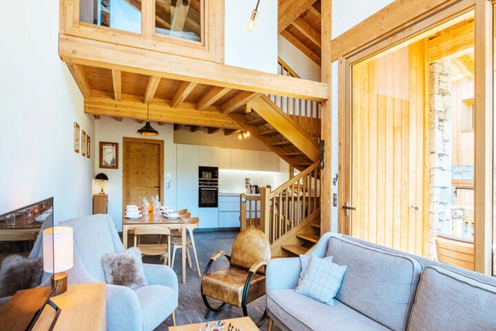 In the picturesque hamlet of Caseblanche, where alpine elegance meets modern comfort, Chalet ECEEL invites you to experience the ultimate mountain retreat. Just 50 meters from the Saint Martin gondola lift, this upscale chalet offers direct access to the renowned 3 Valleys ski area, promising unforgettable days on the slopes. Whether you're savoring the crisp mountain air on the spacious sun terrace or unwinding by the warmth of the wood-burning stove, every moment here feels like a dream come true. The serene surroundings and thoughtful design create a perfect blend of relaxation and adventure. \n\nSpanning 90 square meters, Chalet ECEEL comfortably accommodates up to nine guests across its four beautifully appointed bedrooms. The ground floor boasts a fully equipped kitchen with modern appliances, a cozy dining area, and a welcoming living room that opens onto a southwest-facing terrace with outdoor dining space. The lower level features en-suite and shared bedrooms, offering flexibility for families or groups. On the first floor, the master bedroom provides a private sanctuary with a double bed, walk-in shower, and ample storage. With Wi-Fi, concierge services, and covered parking included, every detail has been designed for your convenience.\n\nBeyond the chalet, the Caseblanche hamlet offers a sports shop and a mountain brasserie, ensuring you have everything you need at your fingertips. In winter, enjoy the luxury of beds made upon arrival and plush towels provided. The charm of Saint Martin de Belleville, combined with the majestic beauty of the Alps, makes Chalet ECEEL an exceptional choice for your holiday. Whether you're here for skiing, hiking, or simply soaking in the breathtaking views, this chalet promises a truly memorable alpine escape.