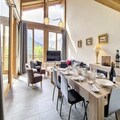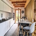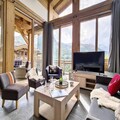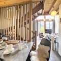 Spanning 80 square meters, Chalet CORON is designed with your comfort in mind. The chalet boasts three en-suite bedrooms, each thoughtfully appointed with plush bedding and modern bathrooms. The open-plan living area features a fully equipped kitchen with high-end appliances, a cozy dining space, and a lounge that opens onto a sun-drenched 25m² terrace. Here, you’ll find garden furniture and a jacuzzi, perfect for unwinding after a day on the slopes. Additional amenities include a private sauna, a ski room with boot warmers, and a laundry room for your convenience.