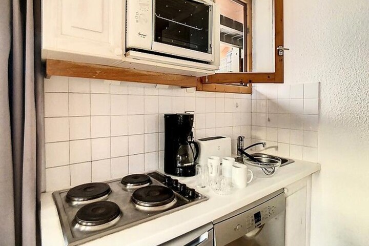 Amid the charming streets of the village center, this cozy apartment in the HORS PISTE residence offers an inviting retreat for your alpine getaway. With its prime location, you’ll find yourself surrounded by local shops, including a bakery, pharmacy, and sports store, ensuring convenience at every turn. The west-facing balcony provides a picturesque view of the village, perfect for unwinding after a day of exploration or skiing. Whether you’re here for winter sports or summer hikes, the atmosphere is warm and welcoming, promising a memorable stay. \n\nThis thoughtfully designed 2-room apartment spans 30m² and comfortably accommodates up to four guests. The bedroom features two single bunk beds, while the living room offers a single sofa bed and a pull-out single bed, ideal for families or small groups. The kitchen is equipped with modern amenities, including electric hobs, a mini-oven, refrigerator, dishwasher, and essential appliances like a kettle and toaster, making it easy to prepare meals at home. A bathroom with a bathtub and separate WC adds to the convenience, while the apartment’s non-smoking policy ensures a fresh and pleasant environment. \n\nLocated just steps from the ski lift, this residence is perfect for winter sports enthusiasts. The included ski locker makes storing equipment hassle-free, while the covered parking space adds an extra layer of convenience. During winter stays of seven nights or more, guests enjoy complimentary bed linen, towels, and other essentials delivered directly to the apartment. \n\nWhether you’re drawn to the thrill of the slopes or the serenity of the village, this apartment offers the perfect base for exploring the beauty of the French Alps. With its blend of comfort, practicality, and unbeatable location, it’s an ideal choice for your next mountain escape.