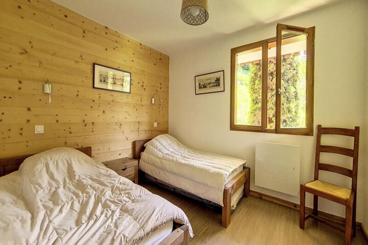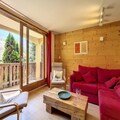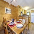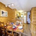 In the heart of the charming Grangeraies district, this delightful duplex apartment offers a perfect blend of alpine tradition and modern comfort. With direct access to the Saint Martin 1 gondola lift, you’ll find yourself seamlessly connected to the world-renowned 3 Valleys ski area, making it an ideal base for winter sports enthusiasts. The southwest-facing balcony provides a tranquil retreat where you can soak in the mountain views and bask in the afternoon sun after an exhilarating day on the slopes. \n\nSpanning 66m², this thoughtfully designed apartment comfortably accommodates up to four guests. The two en suite bedrooms ensure privacy and convenience, with one featuring a double bed and the other twin beds, each equipped with its own shower and toilet. The cozy living room invites relaxation with its television and DVD player, while the fully equipped kitchen, complete with a 4-burner hob, oven, dishwasher, and coffee maker, makes meal preparation a breeze. Additional touches like a private ski locker with a clothes dryer add to the ease of your stay.\n\nA mere five-minute walk brings you to the village center, where you’ll find grocery stores, sports shops, and the ski school. The residence’s location also offers direct access to the ski lift slope, ensuring convenience at every turn. Whether you’re here to carve through pristine powder or explore the serene alpine trails, this property places you at the heart of it all.\n\nWith its 3 Gold Snowflakes resort quality label, this non-smoking, pet-free apartment promises a high standard of comfort and style. From the thoughtful winter amenities to its unbeatable location, this is your gateway to an unforgettable alpine escape.