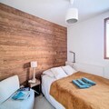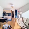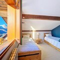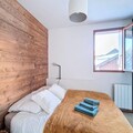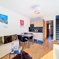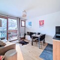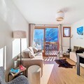 This 45 m² apartment is thoughtfully designed to accommodate 4 to 5 guests, making it ideal for families or small groups. The main bedroom features a comfortable double bed, while the mezzanine provides two single beds and a bunk bed, ensuring flexible sleeping arrangements. The living area, free from distractions like television, opens directly onto the balcony, creating a peaceful space to relax after a day on the slopes. The well-equipped kitchen includes ceramic hobs, a refrigerator, a dishwasher, and all the essentials for preparing hearty meals. A bathroom with a bathtub, a separate WC, and a washing machine add to the convenience of your stay.