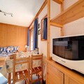 In the picturesque Grangeraies district, where alpine charm meets modern convenience, this inviting apartment offers a cozy retreat for your mountain adventures. With the Saint Martin 1 gondola lift just steps away, you’ll have direct access to the renowned 3 Valleys ski area, making it an ideal base for exploring one of the largest ski domains in the world. The south/west-facing balcony provides a serene spot to soak in the breathtaking views and golden sunsets over the snowy peaks, creating an atmosphere of tranquility and inspiration. \n\nThis 47 m² apartment comfortably accommodates up to six guests across its thoughtfully designed layout. The master bedroom features a plush double bed, while the second bedroom offers two single bunk beds, perfect for families or groups of friends. The living room includes a double sofa bed, satellite TV, and a warm, welcoming space to unwind after a day on the slopes. The well-equipped kitchen boasts modern appliances such as a mini-oven, refrigerator, dishwasher, and microwave, ensuring you can prepare hearty meals with ease. A separate bathroom with a bathtub and a separate WC add to the convenience and comfort of your stay. \n\nLocated just a 10-minute walk from the village center, you’ll find grocery stores, sports equipment shops, and ski schools within easy reach. Whether you’re seeking thrilling descents, peaceful walks through snow-covered trails, or a taste of local Savoyard cuisine, this location places you at the heart of it all. In winter, enjoy the added comfort of included linens, towels, and ski locker access for stays of seven nights or more. \n\nChoose this charming apartment for a memorable alpine escape, where every detail is designed to enhance your experience. From its prime location to its cozy interiors, it’s the perfect haven for creating unforgettable moments in the French Alps.