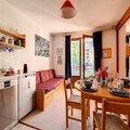 In the charming Grangeraies district of Saint Martin de Belleville, this cozy alpine apartment offers a welcoming retreat for your mountain getaway. Just a two-minute walk from the Saint Martin 1 gondola lift, you’ll have direct access to the world-renowned 3 Valleys ski area, where endless slopes and breathtaking vistas await. The village center, with its quaint shops and local services, is only a five-minute stroll away, ensuring convenience and a touch of authentic Savoyard charm. The residence is accessed via an external staircase, adding a rustic touch to your arrival. \n\nThis thoughtfully designed 42m² apartment is located on the third floor of the Les Murgers residence and comfortably accommodates up to six guests. The layout includes a cozy bedroom with two single beds, a living room featuring two single sofa beds, and an additional sleeping area with a single sofa bed and pull-out bed. The south-west-facing balcony invites you to soak up the alpine sun while enjoying views of the surrounding peaks. A fully equipped kitchen with ceramic hobs, refrigerator, oven, dishwasher, washing machine, kettle, and Nespresso coffee machine ensures you can prepare delicious meals after a day on the slopes. Modern amenities like a TV, DVD player, and a ski locker add to the convenience of your stay. \n\nThe residence’s prime location means you’re close to everything you need, from ski schools and equipment rentals to grocery stores and après-ski options. In winter, guests staying for seven nights or more are treated to included bed linen, towels, and other essentials, making your holiday even more seamless. Whether you’re here to carve through pristine snow or explore the area’s hiking trails in summer, this apartment is the perfect base for your alpine adventures. \n\nWith its blend of comfort, practicality, and unbeatable location, this property promises an unforgettable stay in the heart of the French Alps. Let the magic of Saint Martin de Belleville and the 3 Valleys inspire your next mountain escape.