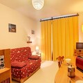 Inside, the apartment spans 45m² and features a thoughtful layout designed to accommodate up to six guests. The upper level includes a bedroom with three single beds and a cozy alcove with one single bed, while the living room provides additional sleeping space with a double sofa bed. The fully equipped kitchen invites you to prepare hearty meals after a day of adventure, complete with modern appliances such as an oven, microwave, refrigerator, and dishwasher. Relax in the comfortable living area with a television or step out onto the south/west-facing balcony to soak in the alpine views. The apartment also includes a bathroom with a bathtub, separate WC, and a ski locker for added convenience.