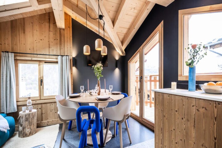 In the picturesque village of Praranger, where the charm of traditional alpine life meets modern comfort, this cozy, renovated house offers an idyllic retreat for families or small groups. Just 2 km from the slopes of Les Belleville, it’s the perfect base for exploring the world-renowned Three Valleys ski area. Surrounded by breathtaking mountain views, this property invites you to immerse yourself in the serene beauty of the French Alps. \n\nThe chalet spans three levels, thoughtfully designed to accommodate up to 4 adults and 2 children. On the ground floor, you’ll find a convenient ski room for your gear, a shower room, and a cozy bedroom with bunk beds ideal for younger guests. The first floor features two inviting double bedrooms and a separate toilet, ensuring privacy and comfort. The second floor is the heart of the home, with a warm and welcoming living and dining area, an open-plan kitchen perfect for shared meals, and a balcony where you can savor your morning coffee while soaking in the alpine scenery. \n\nGuests are welcomed with premium services, including bathroom products, fresh linens, and beds made upon arrival. End-of-stay cleaning is also included, ensuring a hassle-free experience. Additional concierge services, such as Snow Pass or Serenity Pass, are available for those seeking extra convenience and luxury. \n\nWhether you’re here for the exhilarating slopes, scenic hiking trails, or simply to relax in a tranquil mountain setting, Chalet Poudreuse offers a memorable escape. Its proximity to Les Menuires and Saint-Martin-de-Belleville ensures easy access to local restaurants, shops, and après-ski activities, making it an ideal choice for your next alpine adventure.