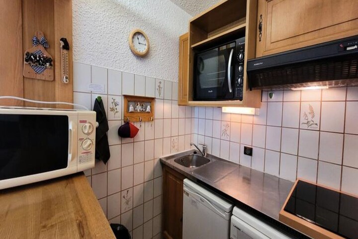 In the serene village of Bessans, where the alpine air is crisp and the landscapes are breathtaking, L'Albaron invites you to experience a tranquil escape. This charming residence, nestled within the 'Les Hameaux des Neiges,' offers a perfect blend of comfort and convenience. With its proximity to cross-country skiing trails and scenic hiking paths, this property is a haven for nature enthusiasts and adventure seekers alike. The village center, just 500 meters away, adds a touch of local charm with its shops and services, ensuring you have everything you need within walking distance. Leave your car behind and embrace the simplicity of mountain living. \n\nThis west-facing studio apartment, located on the first floor, is thoughtfully designed to accommodate up to four guests. The sleeping arrangements include cozy bunk beds in the entrance hall and a pull-out sofa bed in the living room, making it ideal for families or small groups. The kitchenette is fully equipped with modern appliances, including a microwave, refrigerator, dishwasher, and mini-oven, allowing you to prepare hearty meals after a day of exploration. The living area, complete with a TV, provides a cozy space to unwind, while the private balcony offers stunning views of the surrounding peaks. \n\nBessans is a gem for those seeking unspoiled nature and wide-open spaces. Its unique high-altitude plateau geography ensures an exceptional and sunny setting year-round. Whether you're gliding through pristine snow on cross-country skis or hiking amidst vibrant alpine flora, the village's natural beauty is sure to captivate. Ski lockers at the building entrance add convenience for winter sports enthusiasts, and private underground parking is available for guests. \n\nChoose L'Albaron for your next alpine getaway and immerse yourself in the charm of Bessans. With its peaceful ambiance, modern amenities, and unbeatable location, this property promises a memorable stay in the heart of the French Alps.