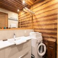 Inside, the apartment exudes warmth and tradition, blending rustic alpine decor with modern comforts. The living room opens onto the spacious 17m² terrace, creating a seamless connection between indoor and outdoor spaces. Relax in the lounge area, gather around the dining table for six, or prepare hearty meals in the fully equipped kitchen. The sleeping arrangements are thoughtfully designed, with a master bedroom featuring a comfortable double bed and a second bedroom equipped with a bunk bed, single bed, and trundle bed, accommodating up to six guests. A modern bathroom with a washing machine and a separate toilet ensures convenience for all.