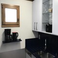 Amenities: Equipped kitchen area (electric stove, oven, microwave, dishwasher, refrigerator) and living area with a sofa bed and two armchairs.