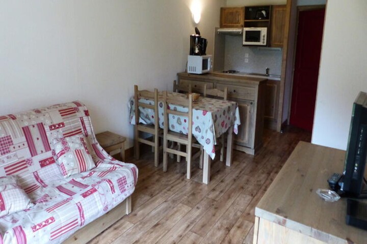 Where the serene alpine plateau meets unspoiled nature, this charming 2-room apartment in the 3-star Le Clos Vanoise residence offers an idyllic retreat for families and nature enthusiasts alike. Located in the heart of Bessans, a picturesque village renowned for its tranquility and sunny high-altitude setting, this ground-floor apartment invites you to immerse yourself in the beauty of the French Alps. Whether you're seeking winter adventures or summer escapades, the surrounding trails and landscapes promise unforgettable moments. \n\nInside, the apartment is thoughtfully designed to accommodate up to six guests. The bedroom features a cozy double bed, while the enclosed sleeping alcove with bunk beds is perfect for children. The living room boasts a comfortable double sofa bed, ideal for relaxing after a day of exploration. The well-equipped kitchen includes a ceramic hob, oven, microwave, dishwasher, and refrigerator, ensuring you have everything needed to prepare delicious meals. A flat-screen TV and Wi-Fi connection complete the amenities, offering modern comforts amidst the rustic charm. The bathroom, fitted with a bathtub and shower curtain, provides a soothing space to unwind. \n\nStep outside to discover ski lockers for your gear and underground parking available for added convenience. The residence also features a shared lounge with a fireplace, a regional restaurant, and bicycle storage, making it a hub of comfort and practicality. Nearby, cross-country ski trails and hiking paths beckon adventurers, while the village offers shops, daycare services, and easy access to ski passes. \n\nChoose this delightful apartment for your next alpine getaway and experience the perfect blend of relaxation, adventure, and authentic mountain living. Bessans awaits with its sunny charm and breathtaking surroundings, ready to create lasting memories for you and your loved ones.