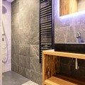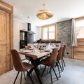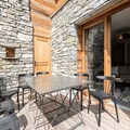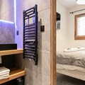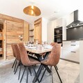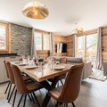Spread across two levels, this beautifully designed apartment combines modern comfort with warm, traditional decor. The upper floor boasts a spacious living area bathed in natural light, thanks to large west-facing windows that open onto a 13m² balcony overlooking the slopes and surrounding nature. The fully equipped kitchen, complete with a dishwasher, induction hob, oven, and microwave, invites you to prepare hearty meals after a day on the mountain. A cozy sleeping alcove with bunk beds, a bathroom, and a separate toilet complete this level. On the ground floor, two elegant master suites, each with its own bathroom, provide restful privacy, making this apartment perfect for two families or groups of up to eight friends.