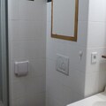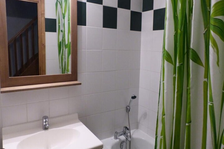 Bathrooms: A bathroom with bathtub and sink. A separate toilet. Upstairs, a shower room with sink and toilet.