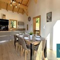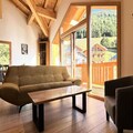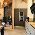 The chalet is equipped with a modern kitchen, featuring a dishwasher, large fridge, oven, electric filter coffee maker, kettle, toaster, and all necessary crockery for up to 8 guests. The spacious living room with a lounge area, pellet stove, and dining area is the perfect place to unwind, while the balcony offers breathtaking views of the surrounding mountains.