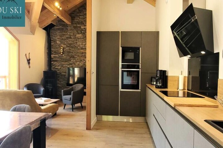 This charming semi-detached chalet offers a cozy and comfortable retreat with stunning views of the Saint Sorlin d'Arves resort. The property includes four bedrooms, with two double beds (160x200 cm) and a set of bunk beds. It is pet-friendly, welcoming small animals (with a fee), provided they are kept on a leash and not allowed on the furniture. Guests can also enjoy the convenience of two bathrooms, a separate toilet, and a washing machine.
