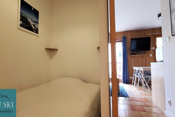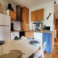 This cozy apartment offers a comfortable stay for up to 6 people. The sleeping arrangements include a bedroom with a double bed (160x190cm), a sleeping area with another double bed (140x190cm), and a living room with a sofa bed (140x190cm). The apartment is pet-friendly, welcoming small animals on a leash, with a supplement. Enjoy free Wi-Fi, parking, and a ski locker, making your stay more convenient.