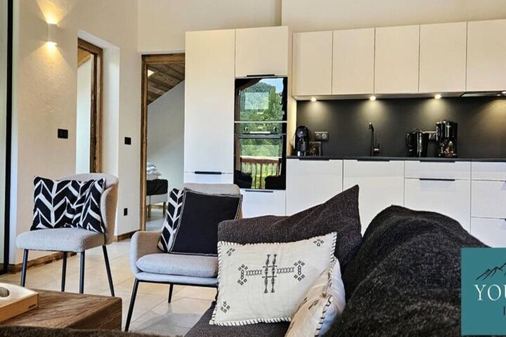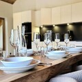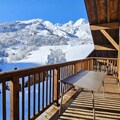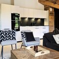 Inside, the apartment boasts a modern, fully equipped kitchen, including a dishwasher, large fridge, oven, coffee maker, and all necessary crockery. The 40 m² living area features a dining table for 11, along with a comfortable seating area and TV. The apartment also has a shared bathroom, separate toilets, and a south-facing balcony with a scenic view of the slopes. Additional amenities include a ski locker with boot dryer, free WiFi, and two covered parking spaces with electric car charging.