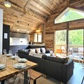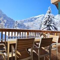 This luxurious duplex apartment offers four beautifully furnished bedrooms, comfortably accommodating up to 8 guests. The master bedroom features a TV, a private shower room, and a WC for added privacy. Two additional bedrooms come with double beds and TVs, while the fourth bedroom has a bunk bed, perfect for families. The apartment is pet-friendly, allowing you to bring your furry friends for an additional fee. For added convenience, a ski locker with a boot dryer and a secure, covered parking space are included.