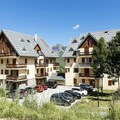 This residence offers 73 apartments spread over three levels, with a variety of configurations to suit your needs. The apartments include a living room with a trundle bed for 2 people, a bedroom with a double bed, and a mountain corner with 2 bunk beds, separated by a sliding door. A bathroom or shower and WC are provided, with some units featuring separate facilities. Pets are allowed for an additional charge, and a deposit is required upon check-in. Wifi access is available for a fee, and bed linen is included in your stay.