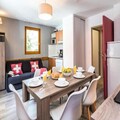 Spread over three levels without an elevator, this charming residence offers 73 well-appointed apartments, located just 1500 meters from the heart of Saint Sorlin d'Arves. The apartments are designed to accommodate up to 8 people, with living areas featuring a trundle bed, a double bedroom, a second bedroom with either a double bed or two single beds, and a closed mountain corner with two bunk beds. The residence is pet-friendly, allowing pets to stay with an additional fee.