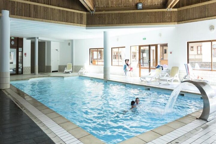 The apartment includes a fully equipped kitchen, a bathroom, and 2 separate toilets. Guests can relax in the heated indoor swimming pool or enjoy the sauna and hammam for an additional charge. Final cleaning is included, excluding the kitchen area. Additional services such as towel changes and a final cleaning package are available.