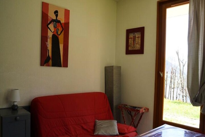 Inside, the apartment features a cozy living room with a sofa bed, a well-equipped kitchenette for preparing hearty meals, and a tranquil bedroom with a double bed. A modern bathroom and separate toilet add to the convenience, while a ski locker ensures your gear is always ready for the slopes. The residence also offers parking, and for the Winter 2024-2025 season, end-of-stay cleaning is included, allowing you to focus entirely on your holiday.