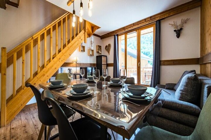At the gateway to the picturesque resort of Saint-Sorlin-d'Arves, this charming duplex apartment offers a cozy alpine retreat with all the comforts you need for a memorable holiday. The Les Chalets de l'Arvan II residence is ideally located less than 50 meters from a shuttle stop and just 700 meters from the slopes, making it perfect for ski enthusiasts and nature lovers alike. During the summer months, guests can enjoy the residence's outdoor swimming pool, open from July 5th to August 30th, adding a refreshing touch to your mountain getaway. \n\nThe apartment is thoughtfully designed with warm, inviting decor and a south-facing orientation that floods the space with natural light while offering stunning views of the surrounding mountains and slopes. The living room opens onto a sunny terrace, creating the perfect spot to relax after a day of adventure. On the ground floor, you'll find a TV lounge and dining area alongside a fully equipped kitchen, as well as a separate toilet. Upstairs, the south-facing master bedroom features a comfortable double bed, while the second bedroom includes a single bed and bunk beds, ideal for families. A bathroom with a bathtub and toilet completes the layout. Additional amenities include a ski locker, free parking, and the convenience of beds made upon arrival. \n\nSaint-Sorlin-d'Arves is a haven for outdoor enthusiasts, offering a wealth of activities year-round. In winter, the slopes of Les Sybelles ski area provide endless opportunities for skiing and snowboarding, while summer brings hiking trails, cycling routes, and breathtaking alpine scenery. The village itself is brimming with charm, featuring local shops, restaurants, and cultural events that showcase the unique character of the region. \n\nWhether you're seeking thrilling winter sports or tranquil summer escapes, this apartment is your gateway to the beauty and adventure of the French Alps. Book now and create unforgettable memories with family or friends in this idyllic mountain setting.