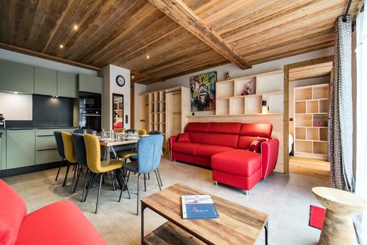 Amidst the vibrant charm of Saint-Sorlin-d’Arves, this exceptional apartment in the Ecrin des Arves residence offers an inviting escape for mountain enthusiasts. With its prime location at the heart of the resort, everything you need is just steps away—from ski slopes and the ESF ski school to local shops and shuttle stops. Imagine waking up to the sun streaming through your south-facing windows, ready to embrace the alpine adventures that await. Whether you’re here to carve through fresh powder or bask in the serenity of the mountains, this residence sets the stage for unforgettable memories. \n\nThoughtfully designed with a warm and contemporary aesthetic, the apartment boasts high-quality amenities to ensure your comfort. The bright living area includes a cozy TV lounge, a dining space, and a fully equipped kitchen perfect for preparing hearty meals after a day on the slopes. Accommodating up to ten guests, the property features two bedrooms with unique layouts. The first offers a king-size bed and a mezzanine with a double bed, while the second duplex-style bedroom includes a double bed, en-suite shower room, and two additional double beds under the eaves. Modern conveniences such as a ski locker with boot dryers, indoor parking, and a washing machine add to the ease of your stay. \n\nStep outside and immerse yourself in the lively atmosphere of Saint-Sorlin-d’Arves. From après-ski delights to scenic trails, the resort offers activities for every season. In winter, enjoy direct access to the slopes of Les Sybelles ski area, while summer brings opportunities for hiking, cycling, and exploring the breathtaking landscapes of the Maurienne Valley. Local shops, restaurants, and cultural events ensure there’s never a dull moment. \n\nChoose this apartment for its unbeatable location, thoughtful amenities, and the promise of cherished moments with loved ones. Whether you’re seeking adventure or relaxation, this alpine retreat is your gateway to the best of Saint-Sorlin-d’Arves.
