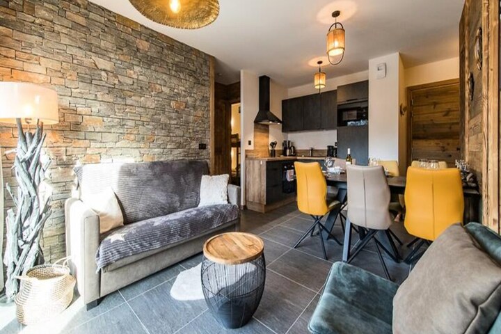 In the heart of the charming Plan du Moulin village, this inviting apartment offers a perfect blend of comfort and convenience for your alpine getaway. With beginner slopes just 300 meters away and the Plan du Moulin Express chairlift a mere 400 meters from your doorstep, every moment here is designed for effortless mountain adventures. Imagine waking up to the golden glow of the sun streaming through your south-facing windows, with breathtaking views of the surrounding peaks setting the tone for a day filled with excitement and relaxation. \n\nStep inside and discover a warm, thoughtfully designed space that feels like home. The apartment features a spacious living room that opens onto a large balcony, ideal for soaking in the crisp mountain air. A fully equipped kitchen invites you to prepare hearty meals, while the dining area and TV lounge provide the perfect setting for cozy evenings. The master bedroom boasts a queen-size bed and its own TV, while the second bedroom offers a double bed and a private shower room. A bunk bed sleeping area, shared shower room, and separate toilet ensure comfort for everyone in your group. With amenities like WiFi, a ski locker with a shoe dryer, and an indoor parking space equipped with an EV charging point, your stay is as convenient as it is luxurious. \n\nBeyond the apartment, the village atmosphere beckons with its welcoming charm. Ski lift passes can be delivered directly to you upon arrival, and early bookings unlock discounts on equipment rentals and lift tickets. Whether you’re exploring snowy slopes or enjoying summer hikes, this residence places you at the heart of the action. Beds made upon arrival and included cleaning services make your holiday truly stress-free. \n\nCreate lasting memories in this mountain haven, where every detail is crafted to ensure a seamless and unforgettable escape.