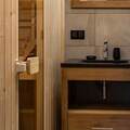 The apartment’s spacious layout and tasteful décor create a warm and inviting atmosphere. The living area, with its comfortable lounge, dining space, and fully equipped kitchen, opens onto a 33m² furnished terrace, perfect for enjoying meals or simply soaking in the views. Three south-facing bedrooms with queen-size beds and ample storage ensure restful nights, while a cozy windowless double bedroom and a sleeping alcove with bunk beds provide additional space for family or friends. A sauna, modern bathrooms, and thoughtful amenities like boot dryers and electric vehicle charging points add to the convenience and luxury of your stay.