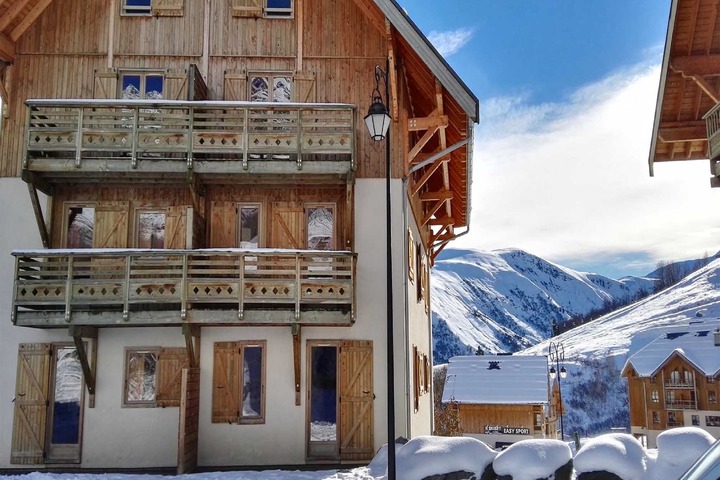 The residence consists of 11 traditional wooden chalets, each containing 9 to 21 appartments from 4 up to 10 persons. They are situated on the upper slopes of St Sorlin d'Arves and have a magnificent view of the surrounding valley. Among the numerous possibilities, walking and climbing in the French Alps stands out as an exceptional way to fully enjoy the beauty of the surrounding area. If it is a ski holiday you are looking for, the area offers more than 90 km of tagged slopes between 1500 and 2600 m, linked to the area of Super Grand Large (6 stations) which embraces 360 km of slopes. Not to miss: snowshoe- or dogsleigh-hiking at 2000, 2500 or 3000m towards the peaks of the Pic de lEtendard before enjoying a delicious evening on high altitude in the shelter of L'Etendard...At 500m from the property there is a stop for the shuttle bus to the town.