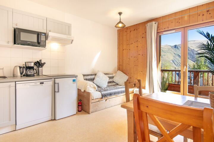This cozy 40 m² apartment in Saint-Sorlin-d’Arves offers a bright and welcoming retreat for up to 6 guests, ideal for families or small groups. With 2 comfortable bedrooms, stunning mountain views, and a peaceful setting in a family-friendly zone, it’s the perfect base for alpine adventures.