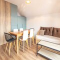 Elevator, Living room(single sofa bed, single sofa bed), Kitchen(electric kettle, toaster, coffee machine, microwave, dishwasher, fridge, freezer, dishes and cutlery), bedroom(single bed, single bed), bedroom(double bed), bathroom(bath tub), TV, balcony, parking, swimming pool(shared with other guests)
