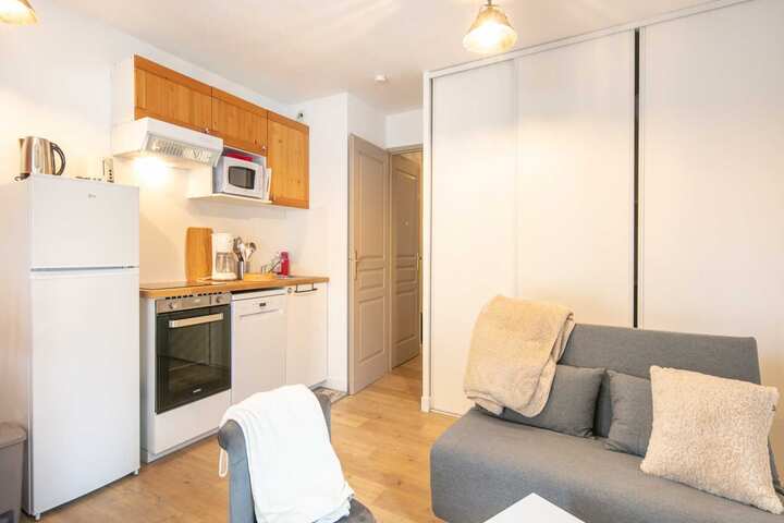 Additional amenities include a terrace to enjoy the fresh mountain air, electric heating for warmth, and access to a heated communal swimming pool for ultimate relaxation. The apartment also provides open-air parking for convenience. With everything you need for a comfortable and enjoyable stay, this apartment is a perfect base for your adventures in Saint-Sorlin-d'Arves.