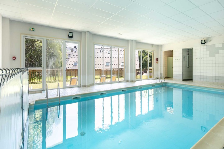 The studio includes a private balcony with outdoor furniture, ideal for soaking in the alpine air. After a day of exploration, unwind in the communal heated swimming pool or relax indoors with a TV and warm gas heating. Open-air parking adds convenience to your stay.
